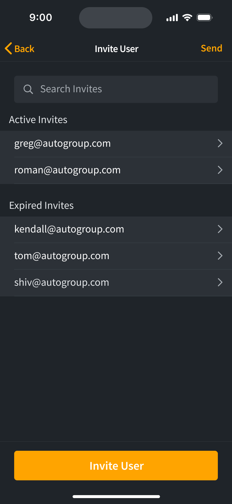 From this screen you can view or manage active and expired invites. You can also invite new users.