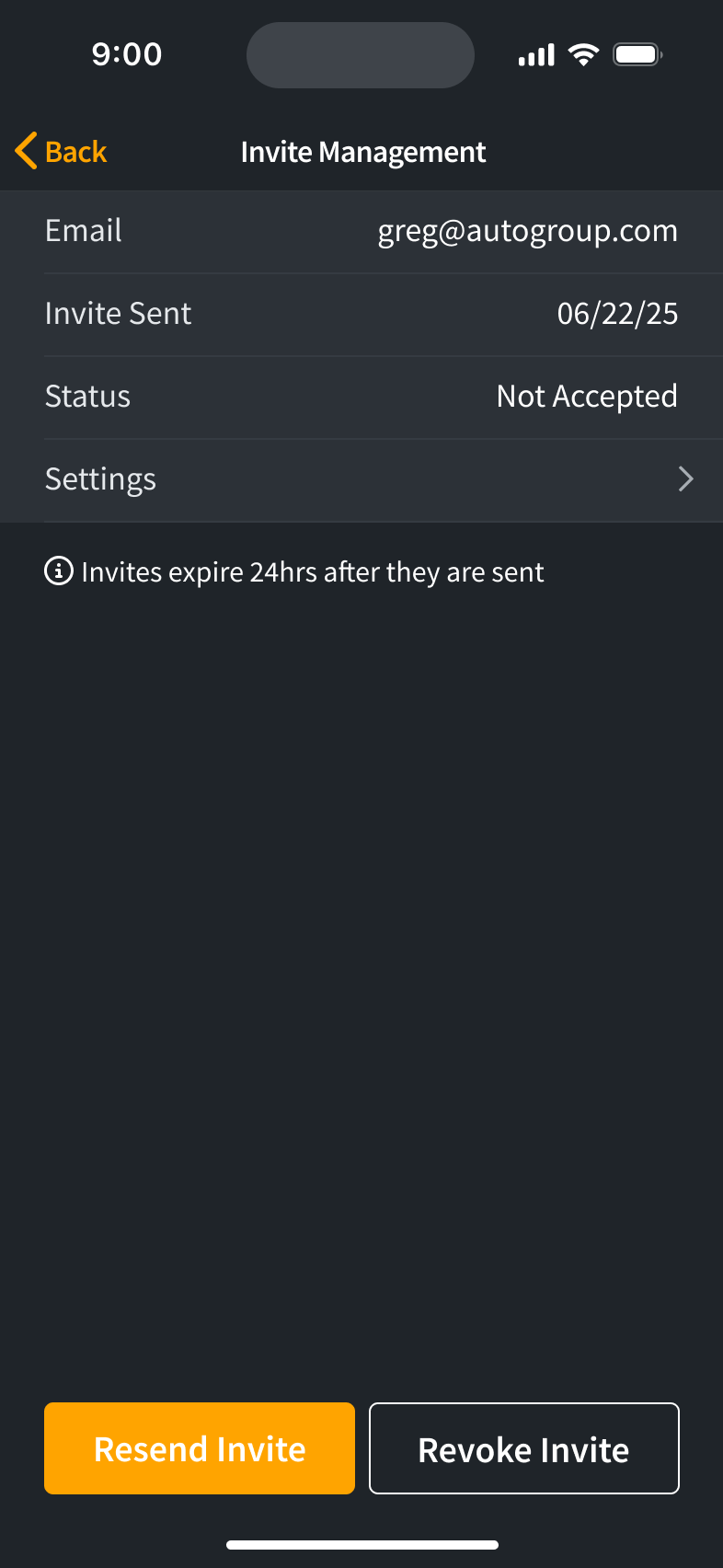 If the invite has expired, you may resend the invitation by pressing Resend Invite.