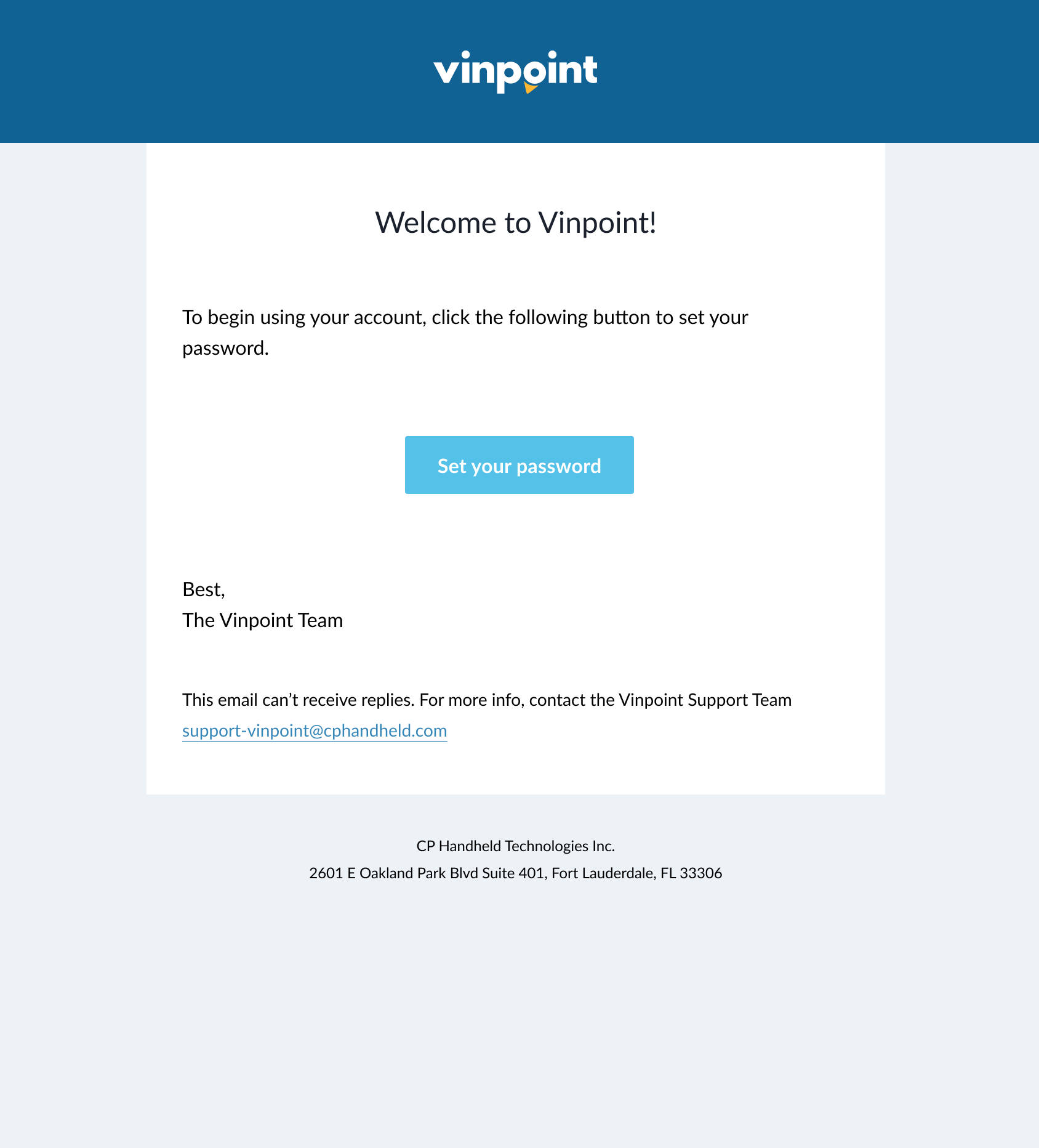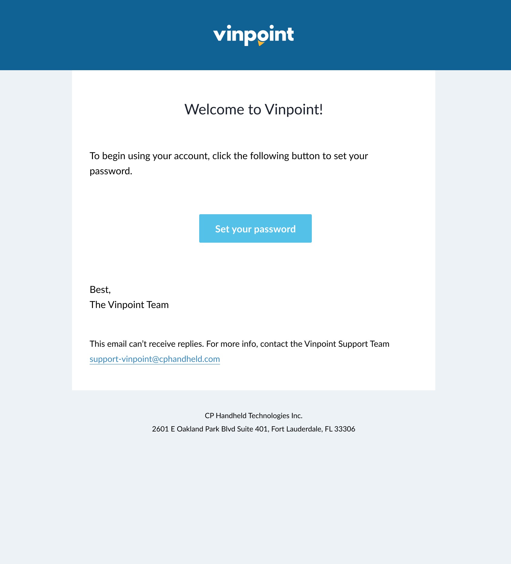 Locate your "Welcome to Vinpoint" email and click Set your password.